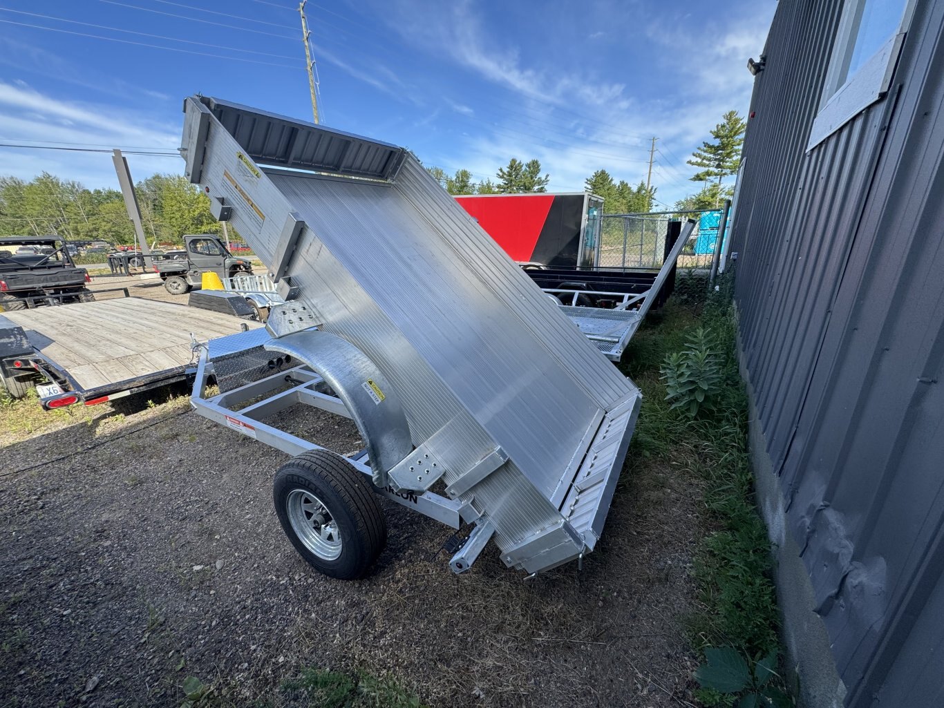 Featuring a fully boxed aluminum frame and a hydraulic dump bed for easy unloading. Crafted with a sleek aluminum finish and equipped with durable aluminum mag wheels, Marlon dump trailers deliver exceptional performance and reliability for every hauling job. Ideal for landscaping, construction, and general hauling needs.